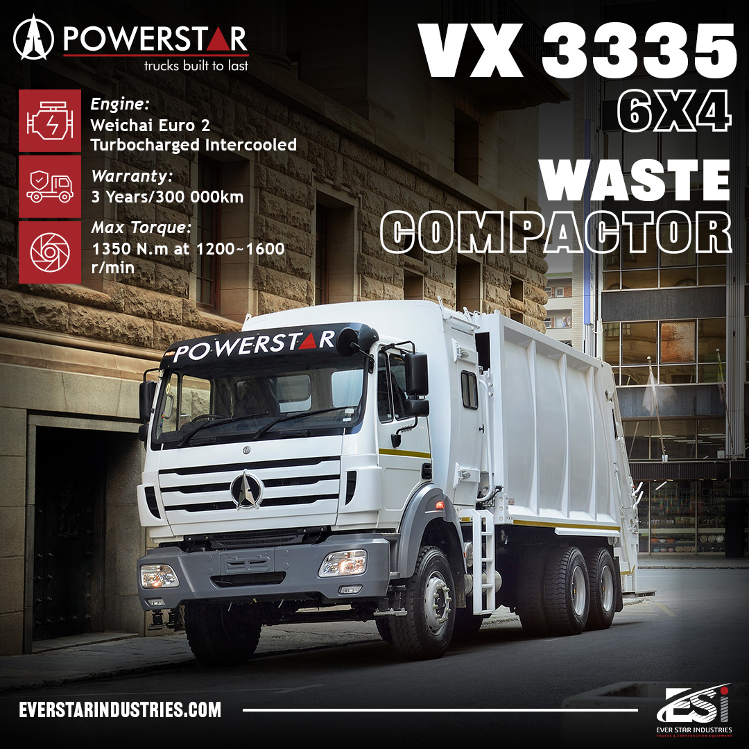 While the chassis is produced by Powerstar, the compactor body is often custom-built by a specialized manufacturer.